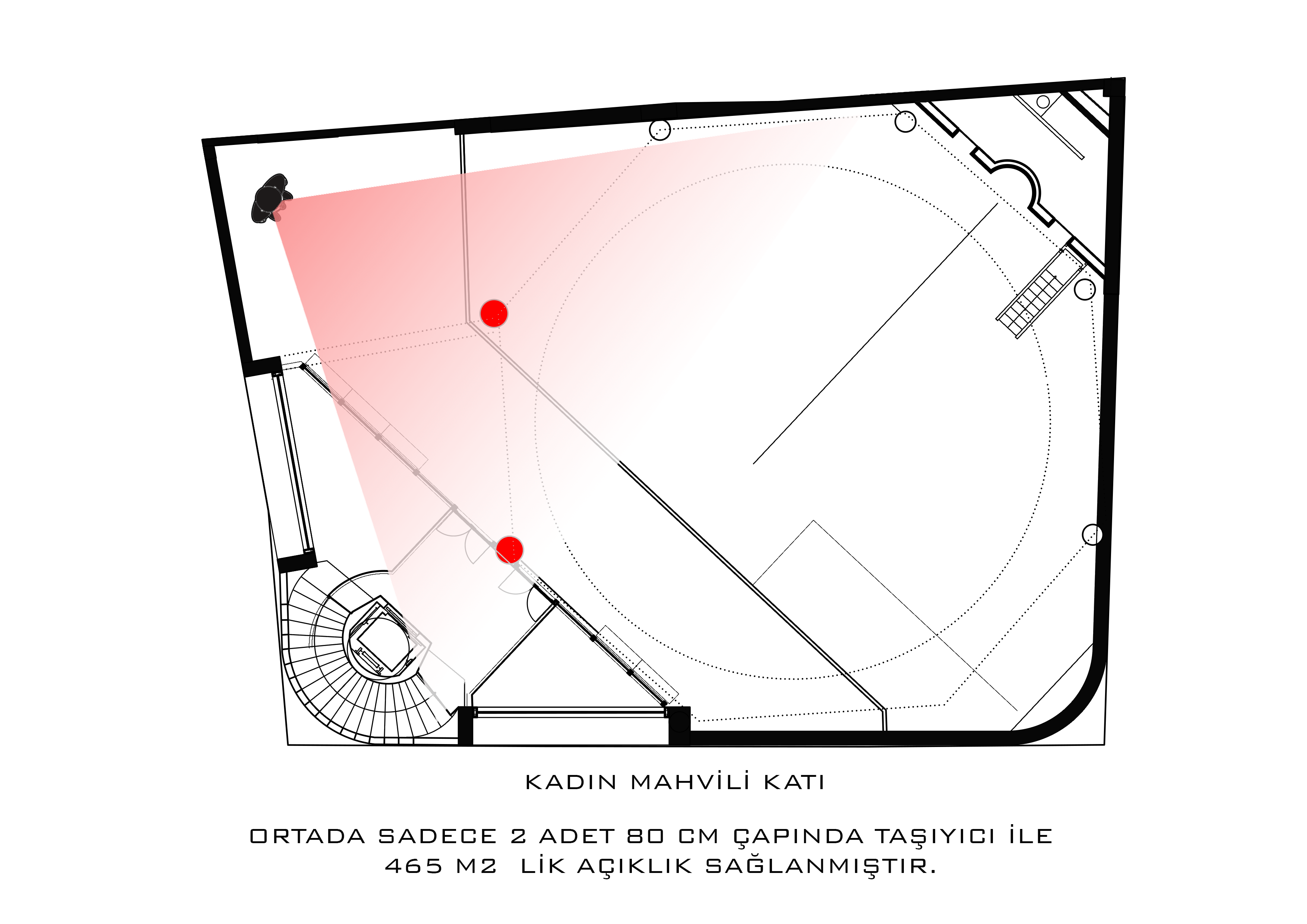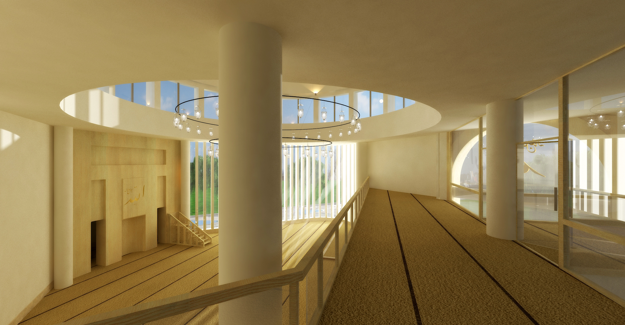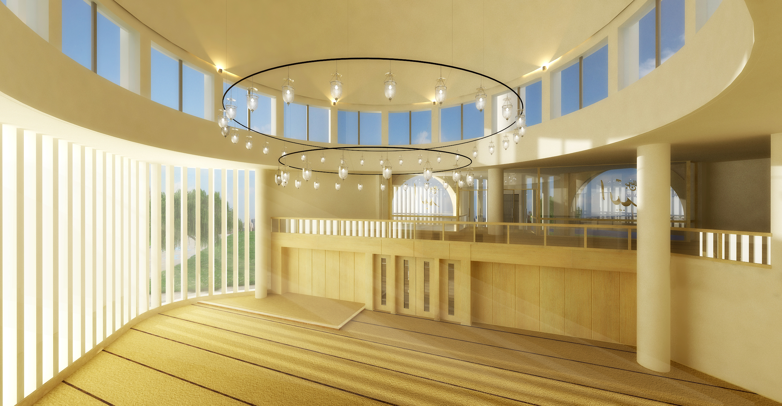 Kubbe etrafı yüksek pencereleri ile: