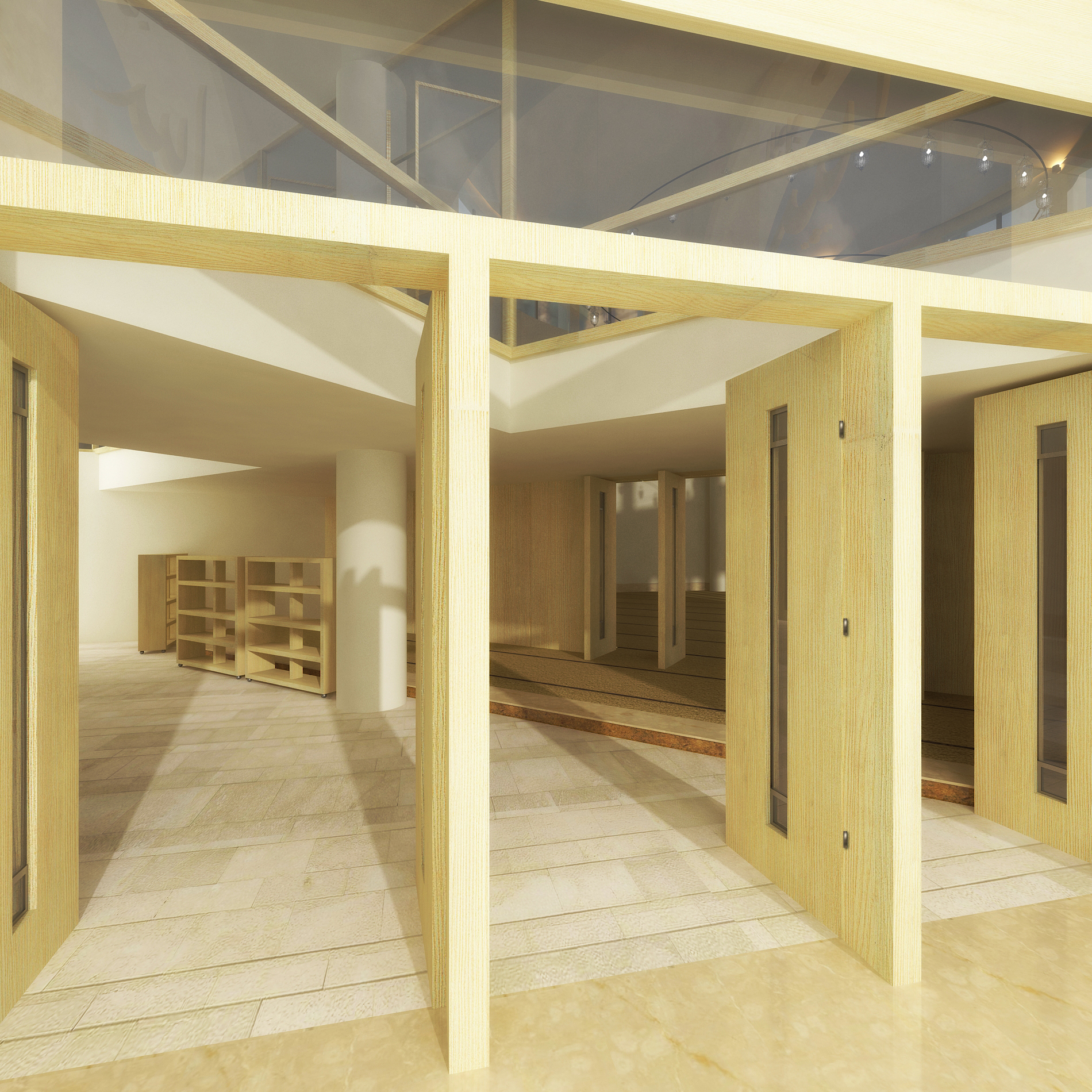 Mekân kurgusu olarak, kübik yalın geometri tercih edilmiştir.